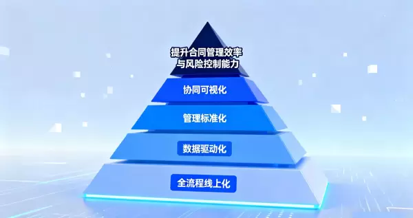 针对上述痛点,该项目以“全流程线上化、数据驱动化、管理标准化、协同可视化”为核心目标,打造覆盖合同全生命周期的管理体系: