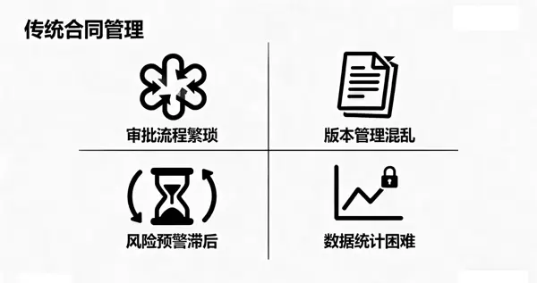 - 风险防控弱:采购与合同场景复杂,人员经验参差不齐,规范化管理不足,易产生商务风险;