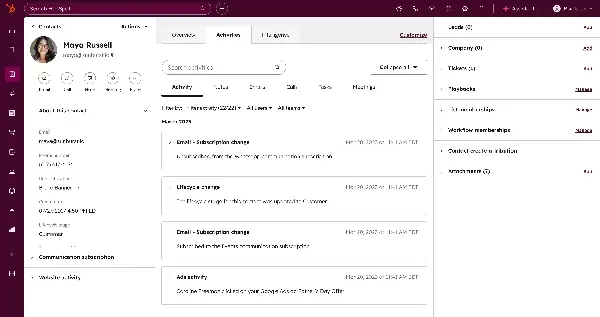 借助 HubSpot Smart CRM,用户的联系人和账户信息可以自动补全、统一管理,显著减少了手动维护的工作量,也方便与其他 Hub 模块协同使用。整合后的数据基础,为自动化流程、个性化推荐和分析洞察提供了坚实的支持。