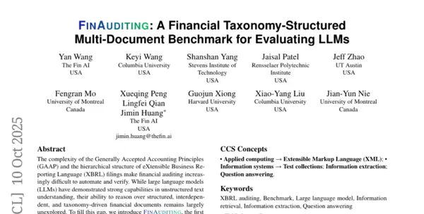 这项由哥伦比亚大学王彦团队领导,联合哈佛大学、蒙特利尔大学等多所著名学府共同完成的研究发布于2025年10月,论文编号为arXiv:2510.08886v1。有兴趣深入了解的读者可以通过该编号查找完整论文。这是一项具有创新意义的研究,首次使人工智能能够像专业财务审计师一样阅读和检查企业的复杂财务报表。
