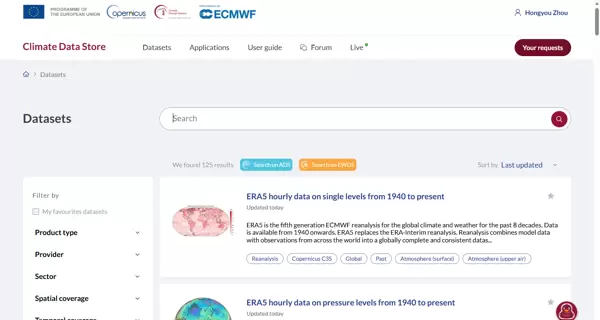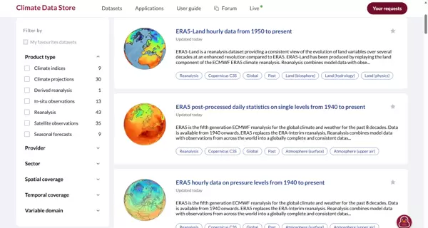 这些数据可从 CDS(Copernicus 数据存储库)下载,常用格式为 NetCDF(