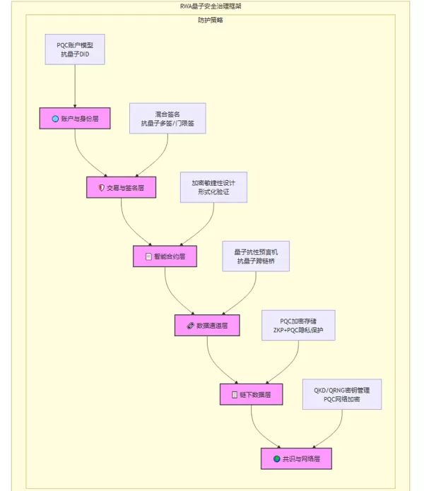 这张图景清晰地表明,RWA的量子安全防护必须是一个全局性的、纵深防御的系统工程,而非简单替换某个签名算法就能解决的问题。