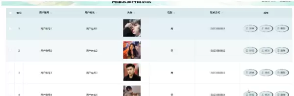 用户资料可以在本功能中进行管理,可以查看用户的注册信息。用户注册管理功能的实现界面如下图5.15所示: