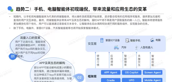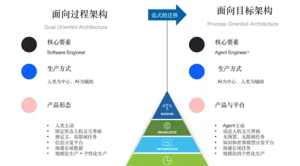 AI Agent将推动软件架构从面向过程转向面向目标。当前的软件(包括应用程序)通过一系列预先设定的指令、逻辑、规则和启发式算法固定流程,确保软件运行结果符合用户的期望,即用户根据指令逻辑逐步操作以实现目标。这种面向过程的软件架构具有较高的可靠性和确定性。然而,这种面向目标的架构仅适用于特定领域,无法普遍应用于所有领域,因此标准化和定制化之间的平衡成为SaaS行业面临的挑战之一。