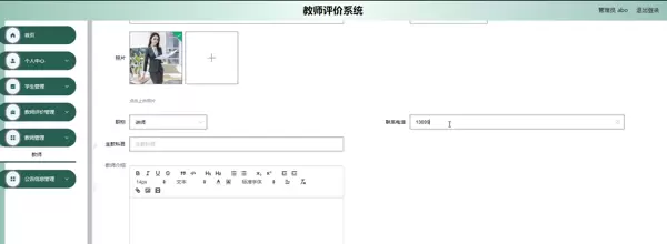 评价数据分析模块:利用大数据分析和机器学习技术,对评价数据进行深度挖掘和分析。提取关键指标,如教学态度、教学方法、教学效果等,为教师提供全面、客观的评价结果。