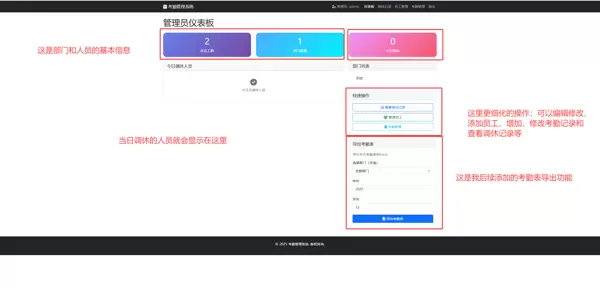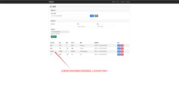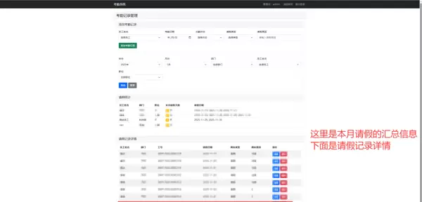大致如此,不同的细分功能可在后续逐步完善。这是超级管理员的界面。超级管理员admin拥有修改、添加员工及其记录的操作权限,便于统计和管理;