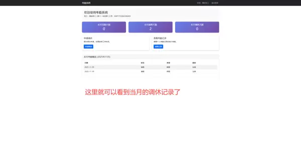 若员工需申请调休,则界面如下所示:(前提是管理员工页面中已存在该员工)