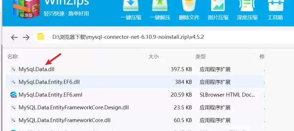 选择并下载6.10.9版本的文件,解压后即可在其中找到Mysql.Data.dll。其他版本未经过测试。