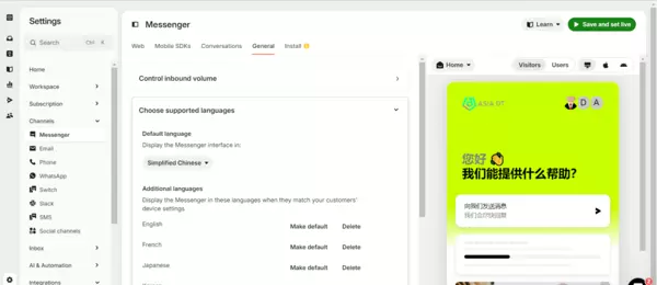 Intercom 的多语言功能强大且灵活,能够满足全球客户的沟通需求: