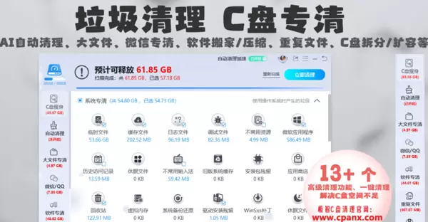 如果在搜索计算器的过程中感觉速度很慢或出现卡顿,可能是因为系统积累了大量垃圾文件。这时可以访问官网提供的链接,使用极智C盘清理软件的系统垃圾清理功能,帮助清除缓存垃圾,确保系统运行流畅。