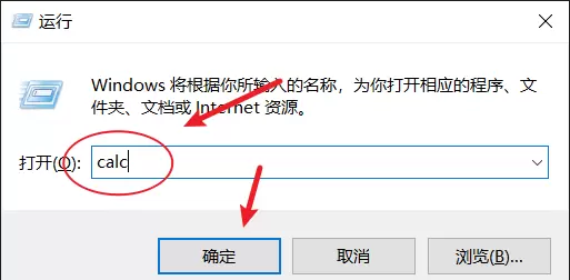 - 在对话框中输入“calc”,然后直接按 Enter 键或点击“确定”按钮。