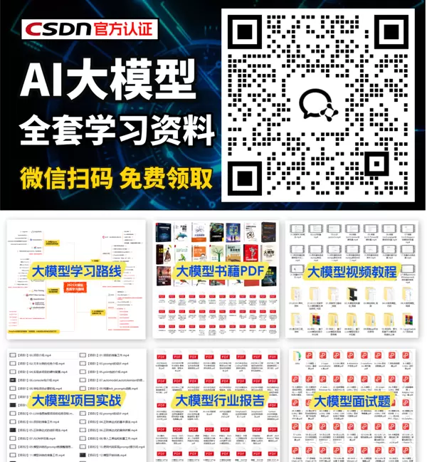 我们已将大模型的全部学习资料整理成包,有兴趣的朋友可以通过以下方式免费获取【保证100%免费】: