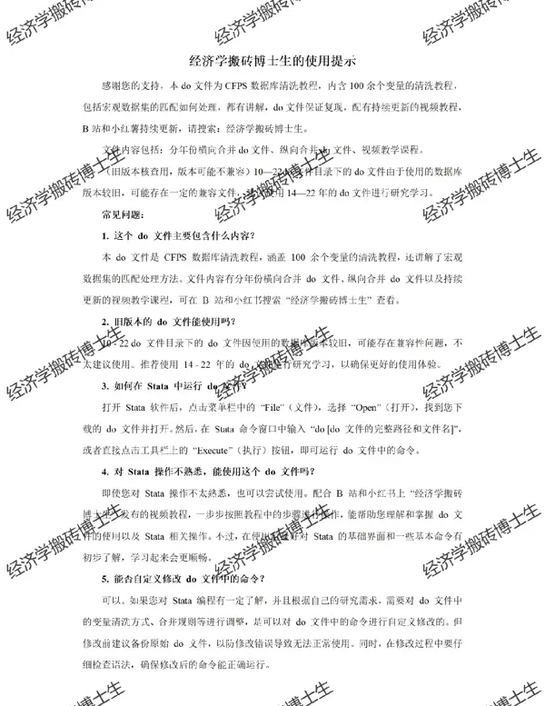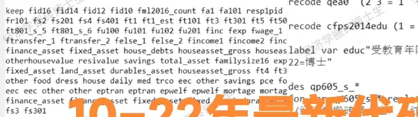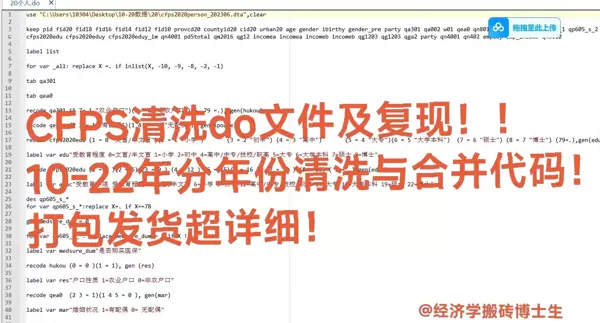 尽管数据清洗过程可能较为繁琐,但通过本课程提供的 do 文件和示例代码,您可以轻松掌握 CFPS 数据清洗的技巧。再次强调,请确保从官方渠道获取合法的数据集,遵守版权规定。希望这些教程和示例能帮助您在数据清洗的学习道路上越走越远。