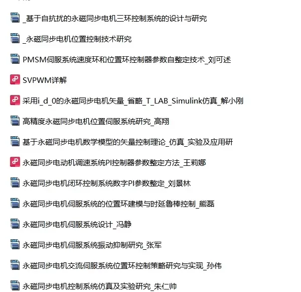 为了准确地搭建PMSM三闭环控制仿真模型,我们需要参考大量的文献资料。这些资料可以是学术期刊、专业书籍或技术报告。例如,《永磁同步电机控制技术》一书详细介绍了电机的数学模型和控制策略,为仿真模型的构建提供了理论基础。