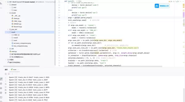 具体实现方面,数据预处理支持一维原始数据,使用的网络模型包括1DCNN、1DResNet及1DRsNet,数据集选用的是德国帕德博恩开源滚动轴承数据集(PN_Dataset),整个项目基于PyTorch框架开发。输出结果包含损失曲线图、准确率曲线图、混淆矩阵以及t-SNE图等。