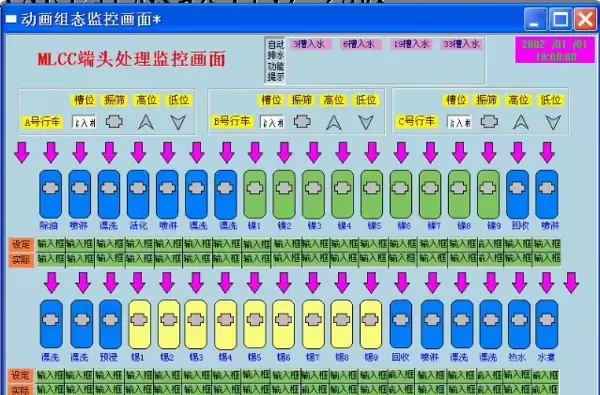这段代码的功能是实时显示电镀槽的状态和温度。MCGS的脚本语言类似于VB,编写起来较为顺畅。然而,在调试过程中,发现画面有时会出现卡顿现象,尤其是在温度刷新频率较高的情况下。通过优化脚本并适当降低刷新频率,最终解决了这一问题。