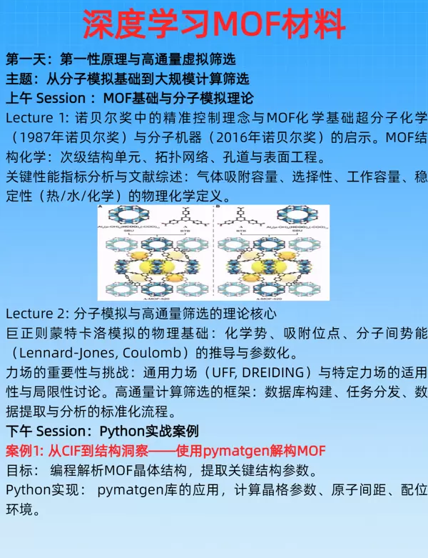 这些技术的发展不仅提升了MOF材料的设计效率,还极大地扩展了其应用范围,推动了该领域的快速发展。通过这些先进的计算工具,研究人员能够更深入地理解MOF材料的复杂性质,为未来的创新提供了坚实的基础。