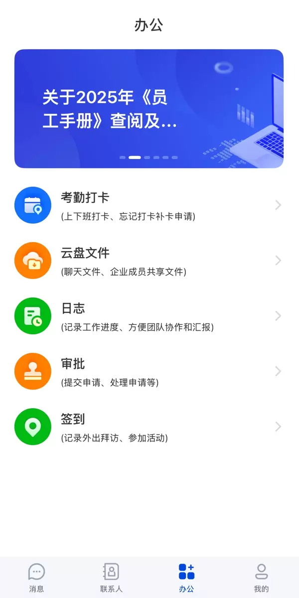在办公协作方面,吱吱的功能涵盖了整个办公流程。基于即时通讯的基础,吱吱还集成了中小微企业常用的办公工具,如智能打卡、OA审批、端到端的大文件快速传输、多人在线编辑和企业专用云盘等,这些功能使得跨部门的合作不再受地理位置的限制,如同面对面交流一样高效,显著提升了团队的工作效率。
