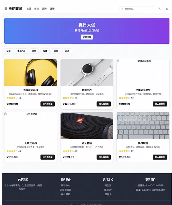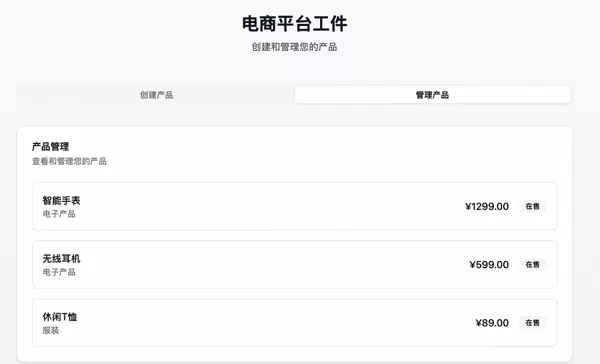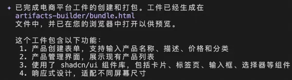 通过输入/artifacts-builder指令,可以生成电商平台工件并在浏览器中预览。