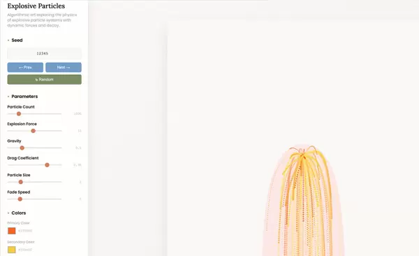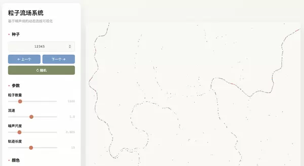 通过输入/algorithmic-art指令,可以创建一个粒子系统,其中粒子在噪声场中移动,产生动态的流线效果。