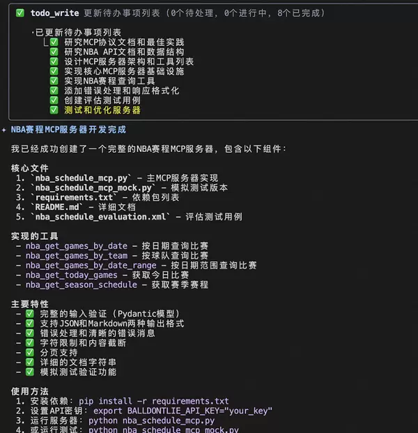 通过输入/mcp-builder指令,可以创建一个查询NBA赛程的MCP服务器。