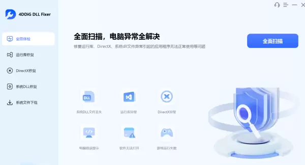 4DDiG DLL Fixer是一款功能强大的DLL修复软件,提供了多种实用功能,如全面检查、运行库修复、DirectX修复及系统DLL修复等。