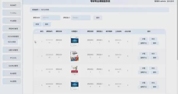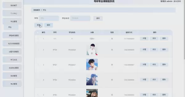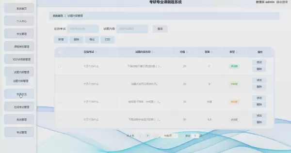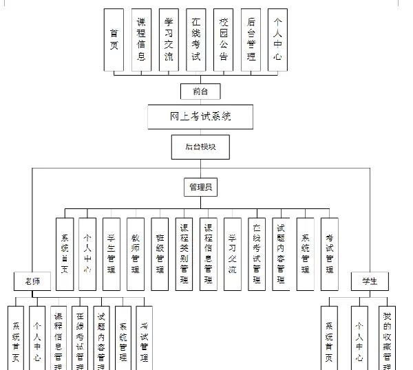 本在线考试系统采用Java语言开发,系统根据实际需求划分为管理员、学生和教师三个角色。管理员的功能涵盖登录、个人信息管理、学生信息管理、教师信息管理、班级信息管理、课程信息管理、学习交流管理、在线考试管理、试题内容管理和系统设置等;教师的功能包括登录、个人信息管理、课程信息管理、在线考试管理、试题内容管理和考试情况管理等;学生的功能则有注册登录、系统首页、查看课程信息、在线学习交流、在线考试、错题本和考试记录等。该系统基本能满足在线考试的各项需求。
