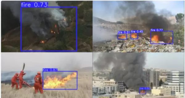 - 火焰检测:利用无人机视频或图像,采用深度学习目标检测算法对复杂环境中的火焰区域进行精确识别和动态扩散分析,为森林防火、城市消防、工业安全等领域提供实时监控和支持。