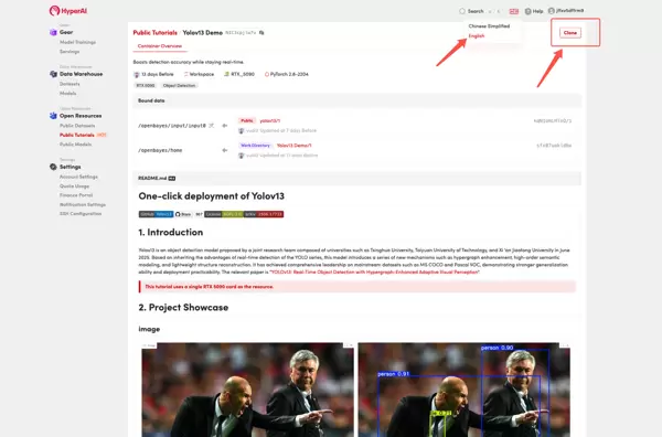 现在,用户可以在HyperAI超神经官网上的一键部署教程中体验YOLOv13的部署过程。