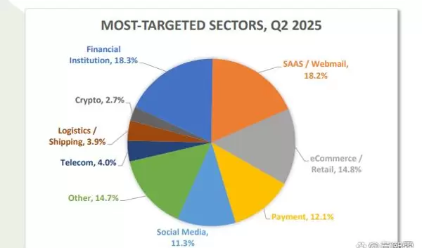 APWG数据显示,金融/支付类(18.3%)和SaaS/Webmail(18.2%)并列成为最常被模仿的行业。这一现象源于金融账户的“高变现效率”——一旦获取用户凭证,攻击者可以直接进行资金转移、信用卡盗刷或身份冒用。例如,在BEC攻击中,2025年第二季度平均每笔请求金额达到83,099美元,比第一季度激增97%。