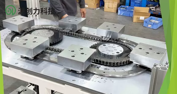 环形导轨系统是一种将直线导轨的精密直线运动通过弧形导轨段转化为连续循环运动的机构。其核心组成包括: