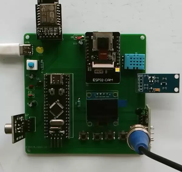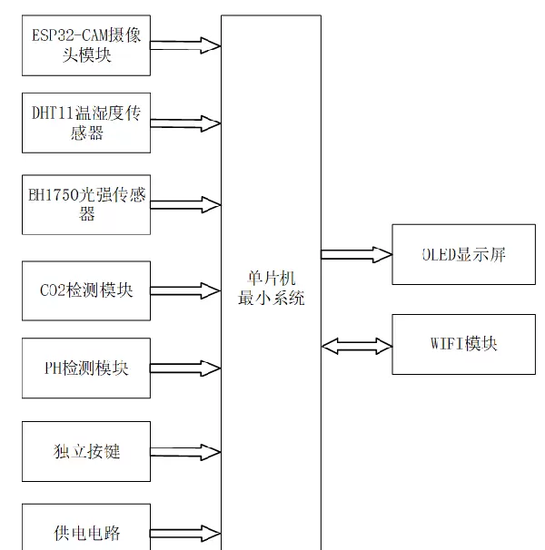 关键词:STM32F103C8T6、OLED12864、DHT11、BH1750、KQ-2801、ph0-14、独立按键、ESP8266-12F、ESP32-Cam