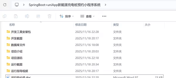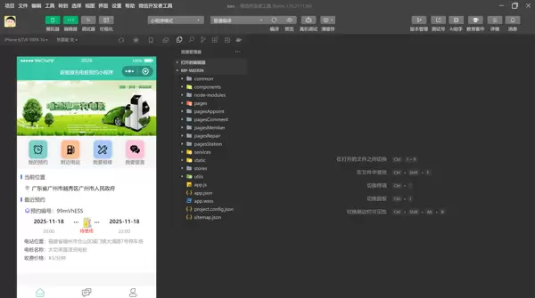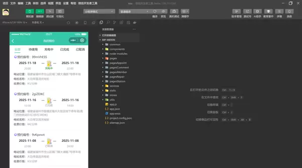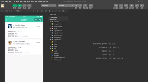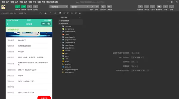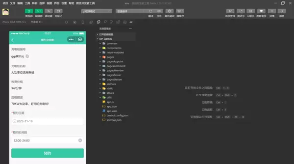 本项目是基于SpringBoot与uniApp框架构建的新能源充电桩预约小程序。它采用前后端分离的设计模式,前端部分包括用户界面和管理界面。用户界面通过微信小程序(uniApp开发)实现,而管理界面则利用Web页面(Vue开发)。该项目代码清晰且遵循良好的编程规范,附带详细的注释,方便理解和学习。此外,项目具备一个完整的新能源充电桩预约系统应有的所有功能。