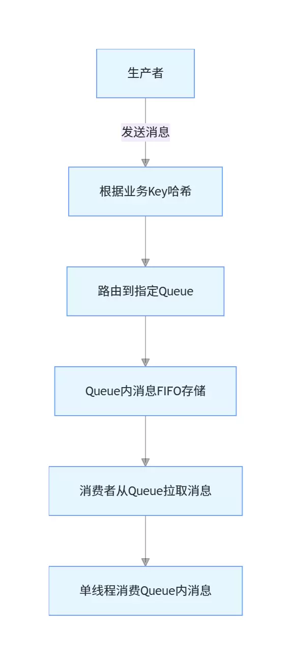 - 生产者将同一业务 Key 的消息发送到同一个 Queue。