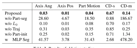 为了评估模型各组成部分的有效性,研究者在五个多部件物体上实施了消融实验。