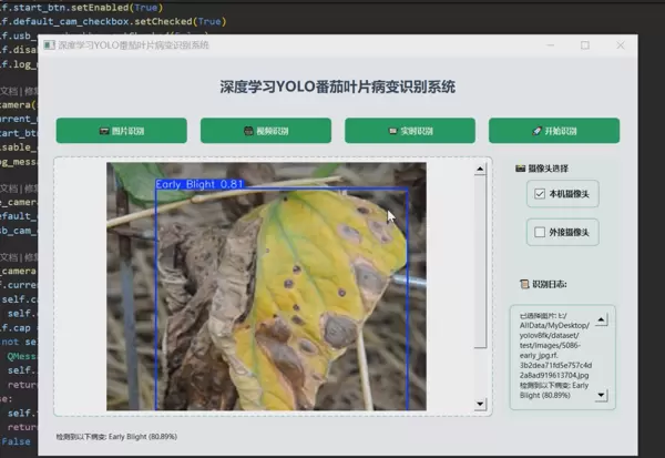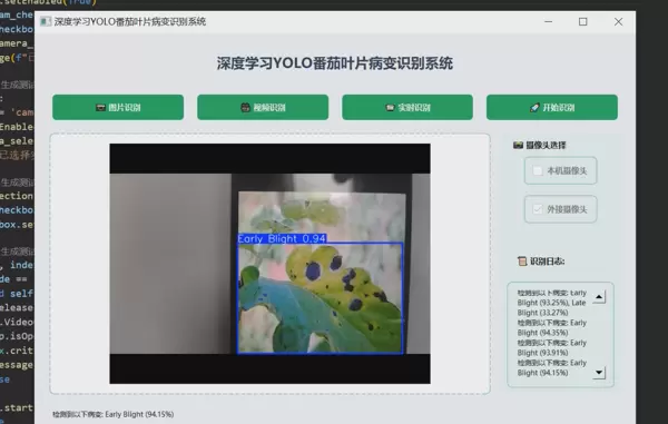 深度学习YOLO番茄叶片病变识别系统是基于YOLOv8目标检测算法的农业智能应用,能够实时识别番茄叶片上的各类病变,为农业生产提供智能化的病害检测方案。该系统利用PyQt5构建了用户友好的图形界面,支持图片、视频和实时摄像头三种输入方式,实现了番茄叶片病害的快速、准确识别。
