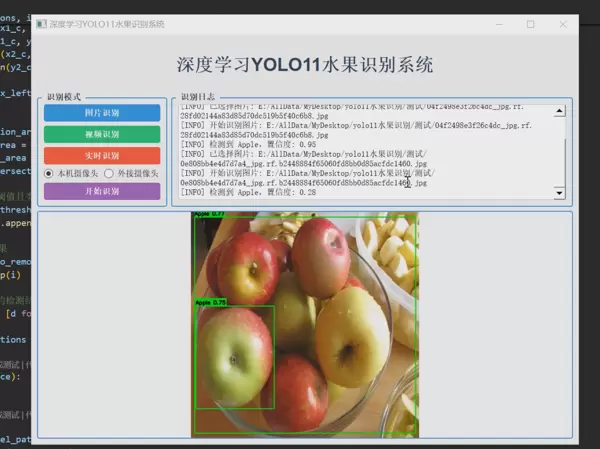 深度学习YOLOv11水果识别系统基于YOLOv8算法开发,能够实现水果的自动识别、分类和计数,解决了传统人工分拣效率低、成本高、标准化程度不足等问题。