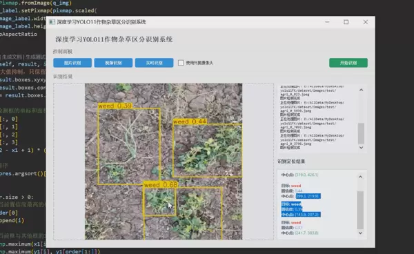 深度学习YOLOv11作物杂草识别系统利用YOLOv11算法来实现实时识别农田中的作物和杂草。该系统不仅可以通过图片、视频或实时摄像头检测杂草,还能在用户界面上展示识别结果。它能精确地定位杂草位置,从而为精准农业和智能除草提供必要的技术支持。