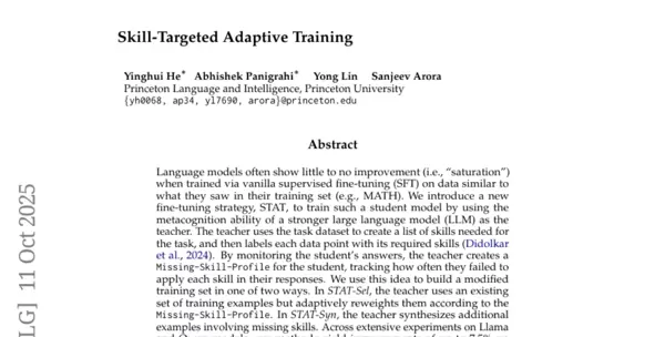 为了解决这一问题,研究团队开发了一种名为STAT(技能导向自适应训练)的新训练方法。该方法的核心理念非常有趣:让一个更强大的AI“老师”观察“学生”模型的答题过程,找出学生在哪些具体技能上存在不足,然后针对这些薄弱环节设计专门的训练内容。