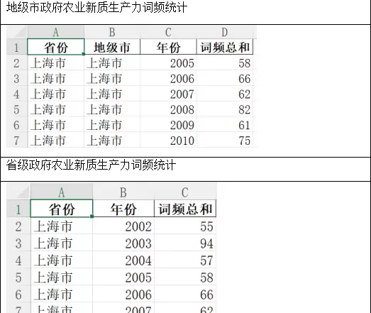 本数据集展示了2001-2024年各省政府工作报告中的农业新质生产力词频统计数据。
