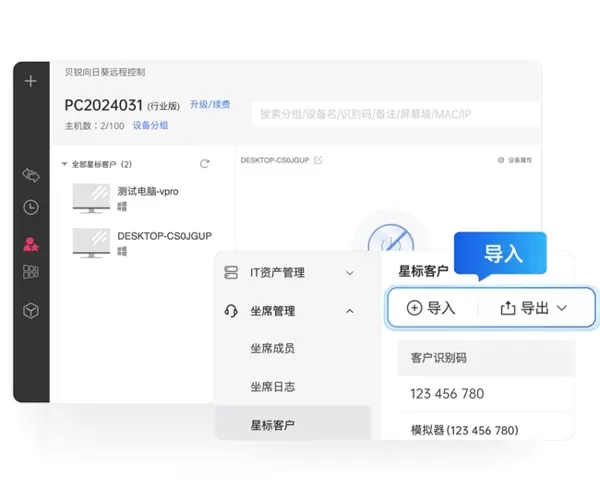 向日葵技术支持解决方案采用了基于识别码的访问机制,使得远程协助可以快速启动。该系统允许对大量的识别码进行标注和管理,支持批量导入历史客户数据,减少了客服人员的工作负担。