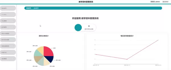 管理员登录后可以查看系统首页、个人中心、学生管理、教师管理、资料分类管理、教学资料管理、班级信息管理和系统管理等功能,进行相关操作,如图所示: