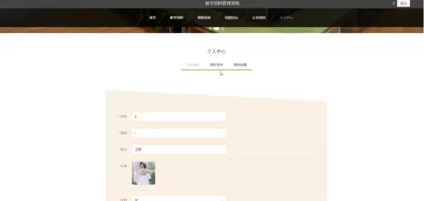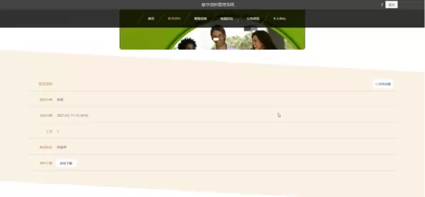 当访问者首次打开系统网址时,会看到一个包含首页、教学资料、班级信息、校园论坛、公告资讯和个人中心的导航栏。系统首页界面如下图所示: