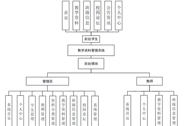 系统采用自顶向下的开发方法,旨在实现一个教学资料管理系统,主要包括管理员、学生和教师的功能模块。