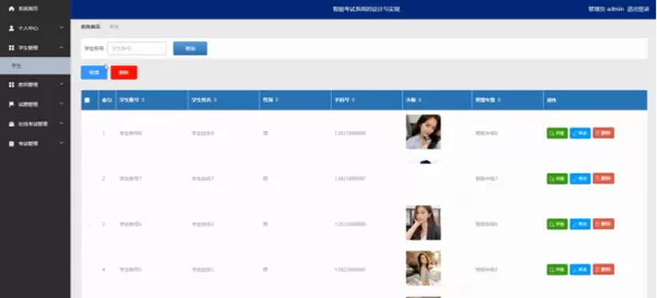 管理员通过点击“学生管理”,可以在学生页面中输入学生账号以查询、添加或删除学生列表,并根据需要查看、修改或删除学生的信息;具体界面见图5-3。
