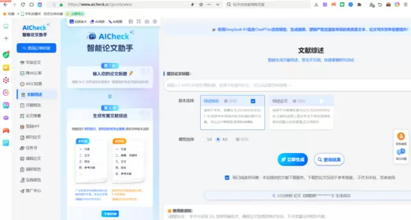 上图展示了 aicheck 在文献综述生成功能上的界面示例,说明了系统如何自动整合文献并输出结构化的综述内容。