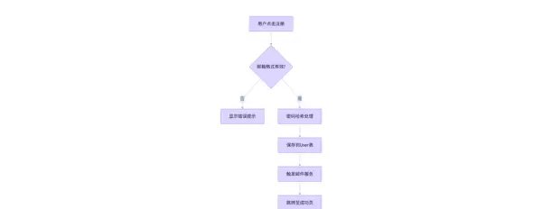 )/^[^\s@]+@[^\s@]+\.[^\s@]+$/ - 配置后端工作流:加密密码 → 存入DB → 发送欢迎邮件