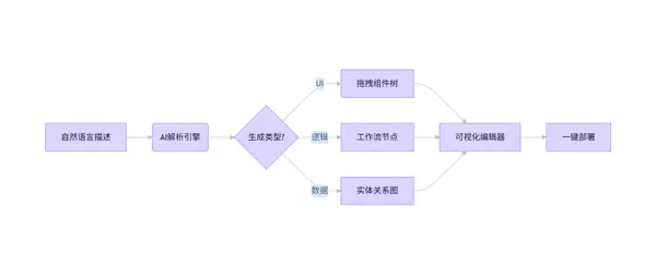 - 自然语言转逻辑块:用户说“当用户点击按钮时,发送邮件”,AI自动生成事件流。
