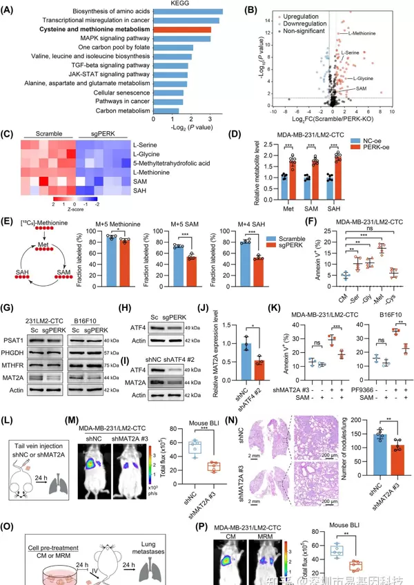 - RNA-seq:比较PERK-KO与对照CTC clusters的转录组差异,并结合代谢组学分析揭示PERK在蛋氨酸代谢中的作用。