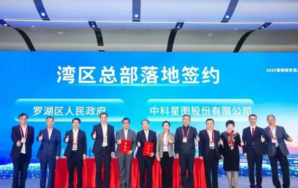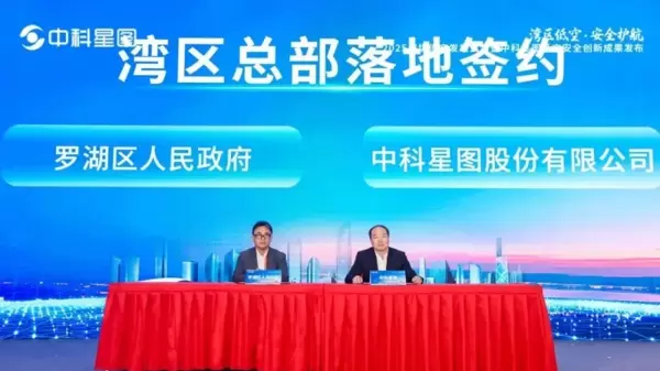 大会上迎来了一个重要的时刻——中科星图湾区总部正式落户罗湖。国家航天局、深圳市区、中国航空运输协会等领导见证了签约仪式。这一战略布局标志着中科星图深入参与粤港澳大湾区低空经济生态圈,将为区域产业发展带来强大的推动力。
